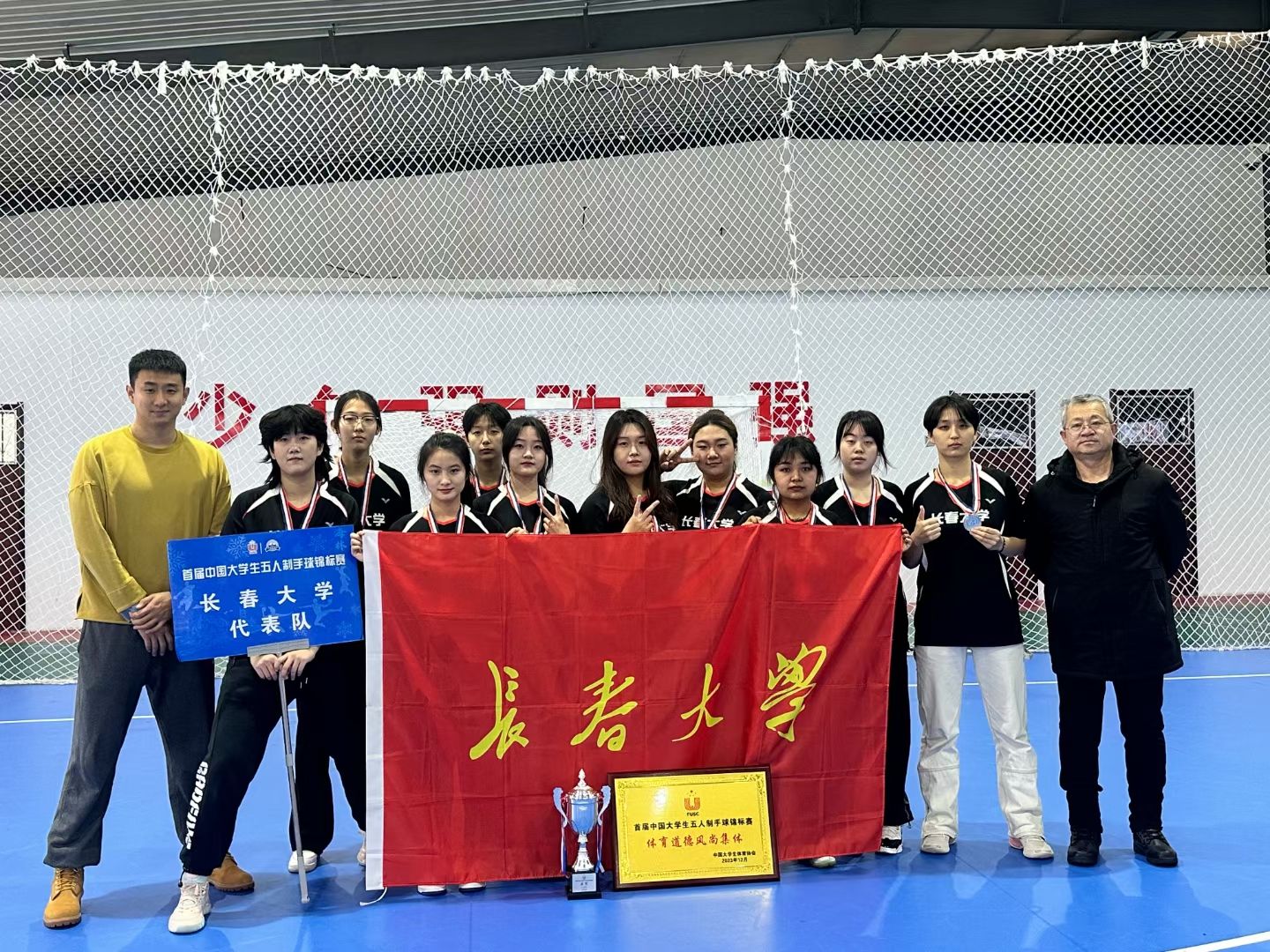 12月12日,由中國大學生體育協會主辦、中國大學生體育協會手球分會執行、海林市教育體育局承辦的首屆中國大學生五人制手球錦標賽在黑龍江海林市舉辦。共有來自同濟大學、東華大學、中國地質大學(北京)、長安大學、甘肅政法大學等17所高校的24支代表隊300余名領隊、教練員、運動員參賽。經過5天激烈的角逐,我校手球隊獲得甲組女子第二名并且榮獲體育道德風尚獎。