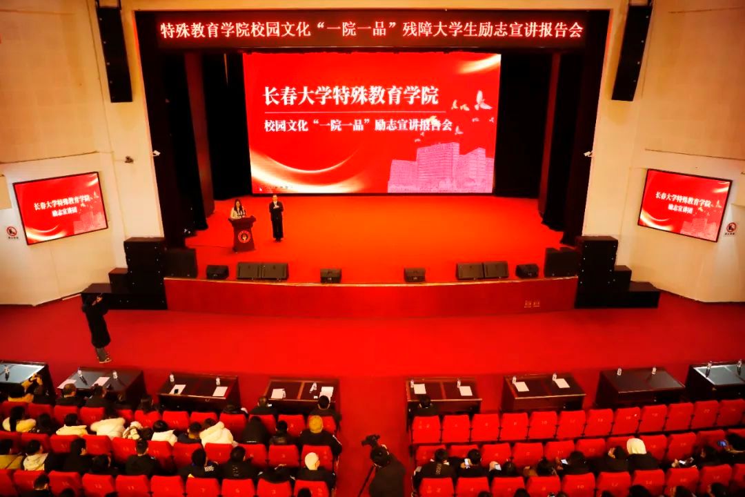 “那時候我最害怕的就是上舞蹈課,每天都在撕腿壓腰的痛苦中度過。但我有一股倔強——我不能做最差的!于是老師壓得再狠,我也不會去反抗,我一邊落淚一邊完成老師布置的任務。一學期下來,老師都驚嘆我的進步,我也終于不是墊底的人了。”特殊教育學院聽障學生王可聞的成長經歷感動著現場師生。在這場特殊教育學院殘障大學生勵志宣講報告會上,6位殘障大學生用自己的經歷講述追夢之旅,展現出他們堅不可摧的意志和對夢想的執著追求。