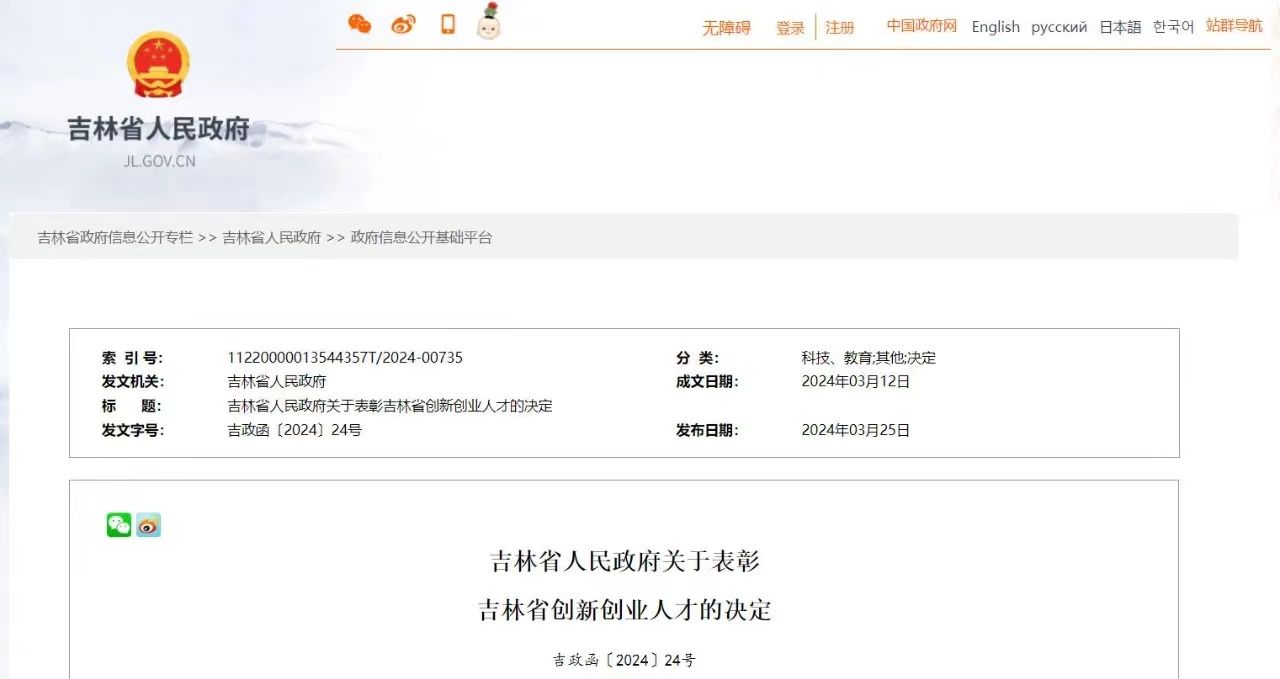 我校教師被授予“吉林省優(yōu)秀創(chuàng)新創(chuàng)業(yè)人才”稱號(hào)