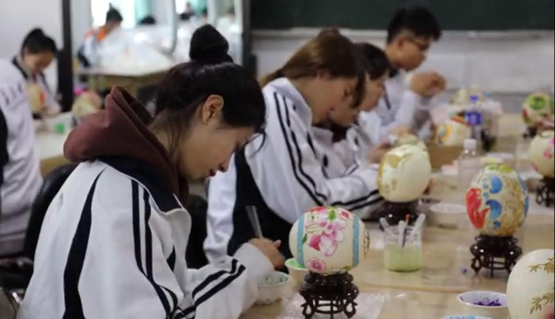 我校特殊教育學院“蛋殼藝術文旅產品研發工作坊”成立于2015年,主要以各種禽類蛋殼為材料進行創作,采用雕刻以及傳統的景泰藍掐絲技法,對鴕鳥蛋殼、鴯鹋蛋殼、鵝蛋殼、雞蛋殼等進行加工制作。工作坊建立8年來,聽障大學生們積極投入到學習和實踐中,創作出了上萬件具有觀賞價值和實用價值的蛋雕藝術品。