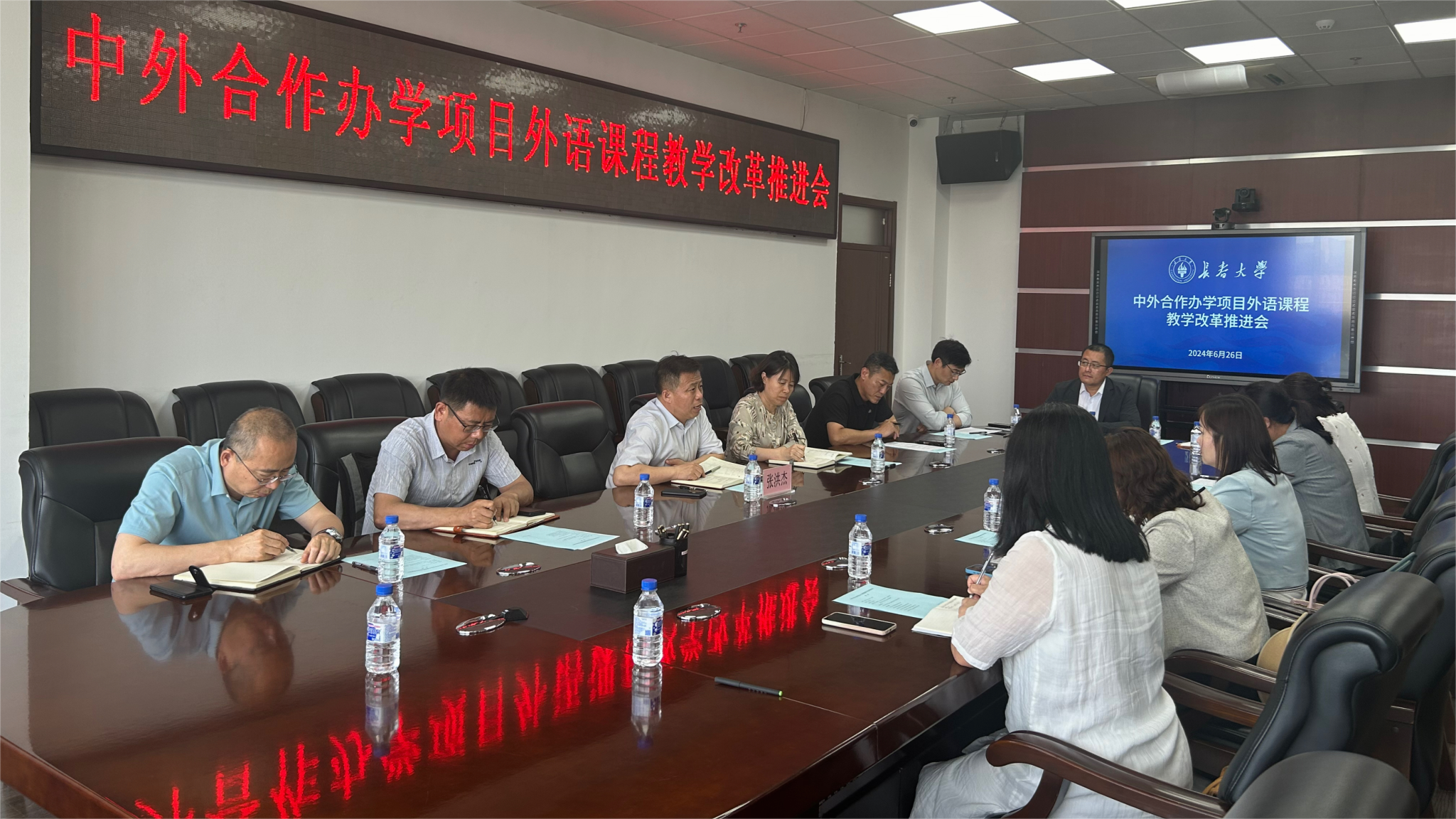 6月26日,學(xué)校召開中外合作辦學(xué)項(xiàng)目外語課程教學(xué)改革推進(jìn)會(huì),會(huì)議由副校長(zhǎng)張洪杰主持。