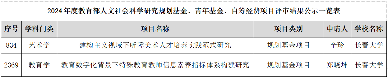 近日,教育部社科司發布了2024年度教育部人文社會科學研究一般項目評審結果,我校特殊教育學院全玲副教授的項目《建構主義視域下聽障美術人才培養實踐范式研究》、鄭曉坤教授的項目《教育數字化背景下特殊教育教師信息素養指標體系構建研究》獲批教育部人文社科規劃基金項目。