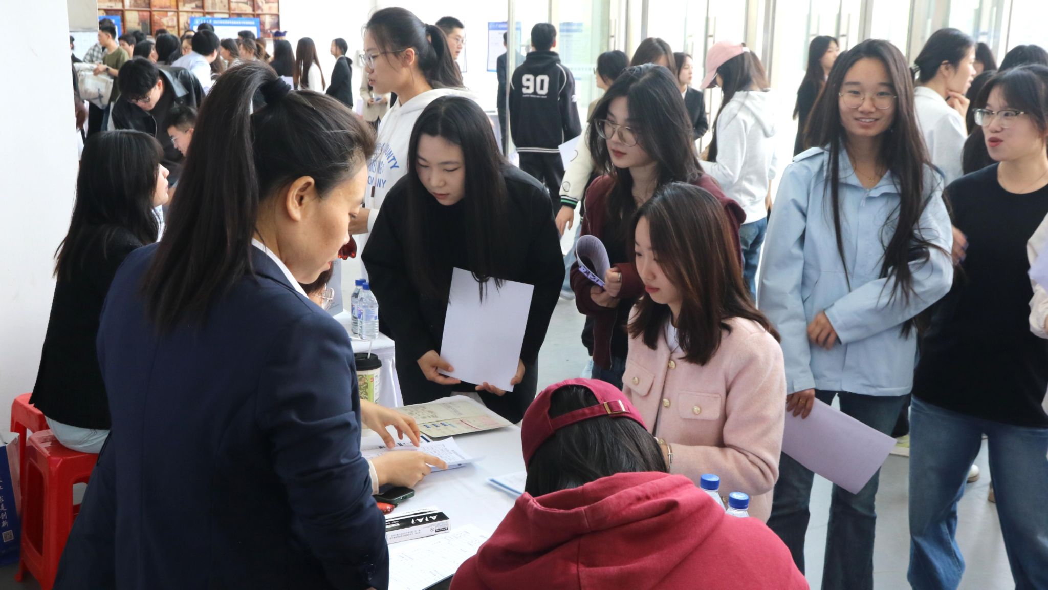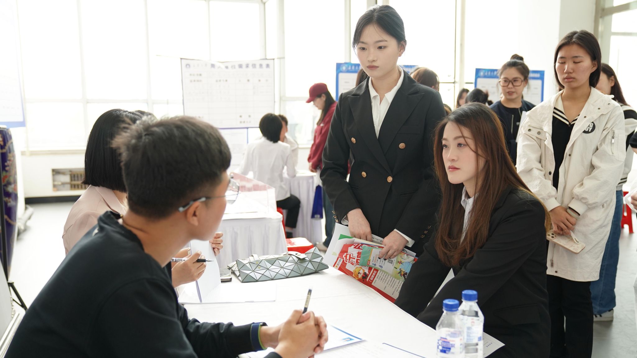 就業(yè)創(chuàng)業(yè)指導(dǎo)中心負(fù)責(zé)人,經(jīng)濟(jì)學(xué)院領(lǐng)導(dǎo)班子成員、系主任、輔導(dǎo)員、部分專任教師、2025屆畢業(yè)生、2022級(jí)部分學(xué)生參加雙選會(huì)。